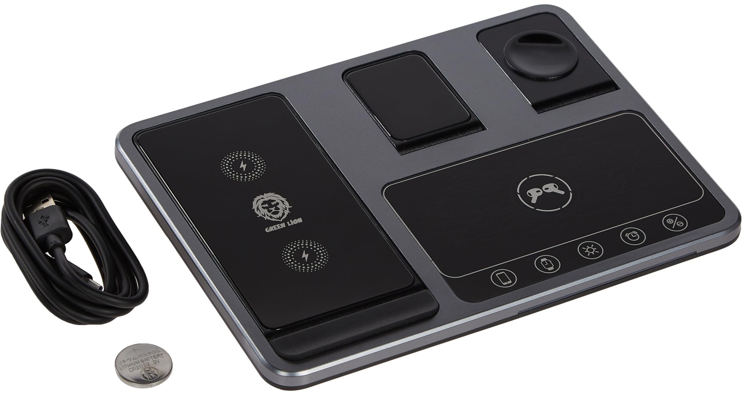 شارژر بیسیم 'گیرین لاین، داک شارژ بیسیم ۴ در ۱، سازگار با اپل واچ ۵ و ایرپاد، پایه شارژ بیسیم سریع برای آیفون